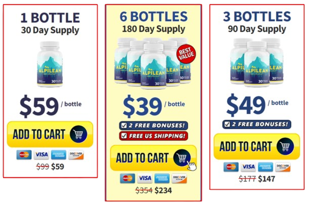 As part of an April 2023 promotion, Alpilean is available at a discount rate. Normally priced at $99 per bottle at retail, Alpilean is available for just $39 to $59 per bottle through a new promotion. Plus, certain qualifying purchases come with free shipping and bonus eBooks, and all purchases are backed by a 60 day moneyback guarantee.