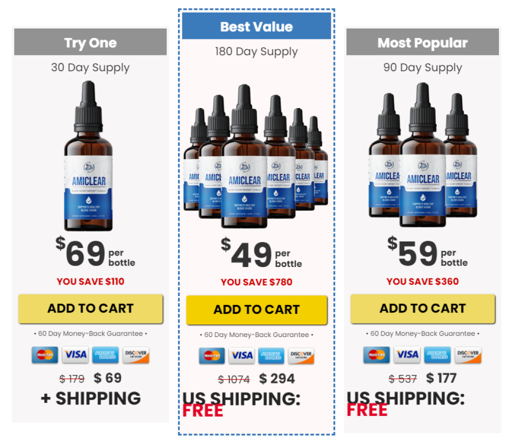 Every bottle of Amiclear comes with a full 60-day guarantee. You can try it out and see its restorative effects on your blood sugar with no financial risk whatsoever!